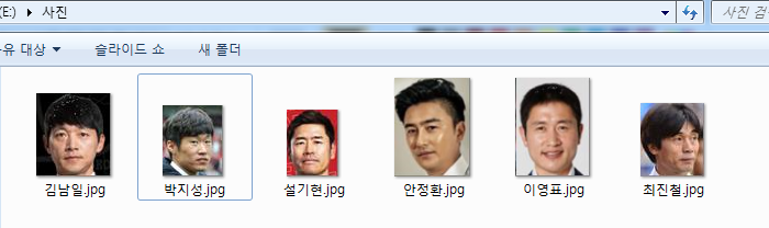 그림을 저장시 구분하기 위하여 박지성.jpg, 이영표.jpg, ... 이런 식으로 저장을 해보겠습니다.