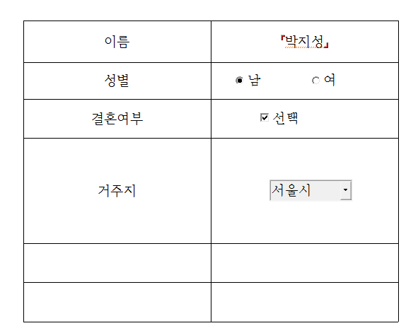 결혼여부에 체크했으면 기혼이고 아니면 미혼입니다.