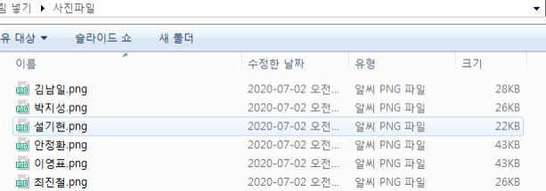 그 '사진파일' 폴더에는 각 개인의 사진이 있습니다.