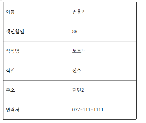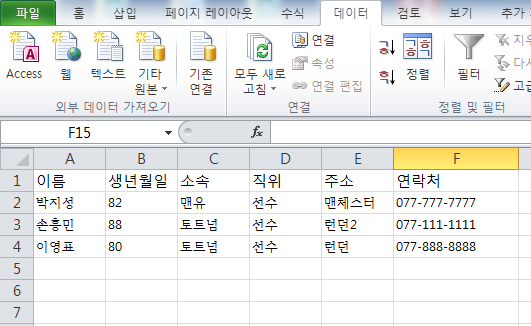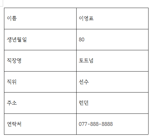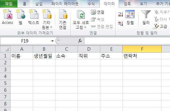 data=["이름","생년월일", "직장명", "직위", "주소","연락처"]